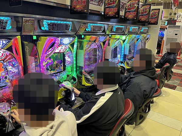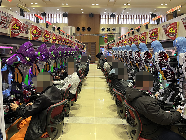 16時ごろの4円パチンコでは「新世紀エヴァンゲリオン〜未来への咆哮〜」や「ぱちんこ シン・エヴァンゲリオン Type レイ」、「P大海物語5スペシャル」で好調なプレイヤーが多数見受けられ、時折見せる嬉しそうな様子が印象に残っている。