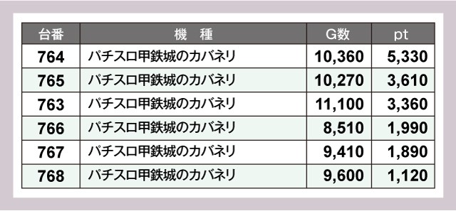 『パチスロ甲鉄城のカバネリ』も6台すべてが4桁pt獲得の優秀台となっており、プレイヤーたちは充実した時間を過ごせていたように思う。