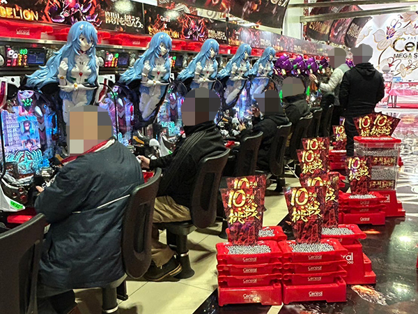 14時ごろの4円パチンコを見てみると「ぱちんこ シン・エヴァンゲリオン Type レイ」や「P ゴジラ対エヴァンゲリオン セカンドインパクト G」、「新世紀エヴァンゲリオン〜未来への咆哮〜」が高稼働。プレイヤーの嬉しそうな表情を多数確認している。