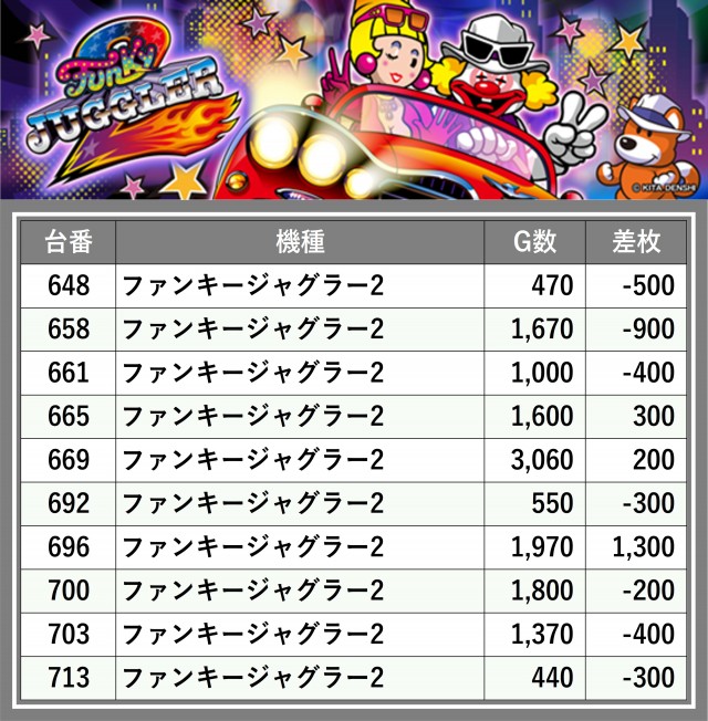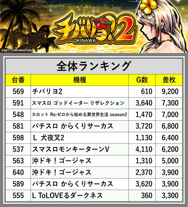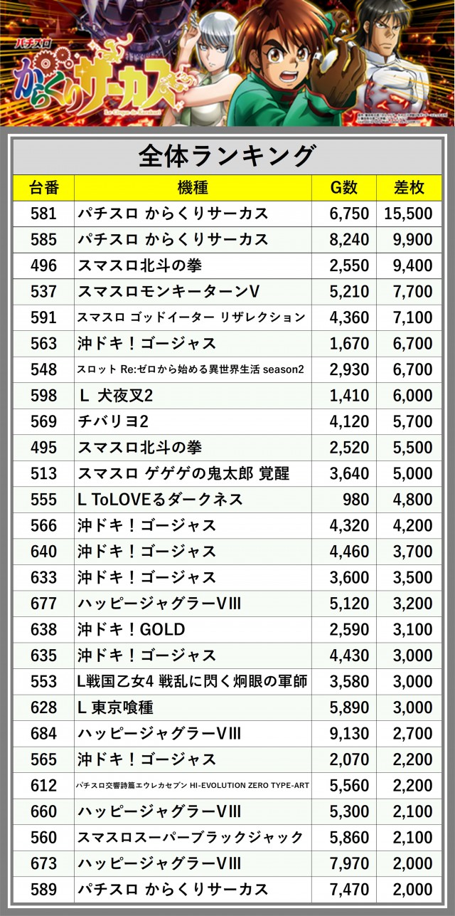 厳選された取材対象機種をはじめ、その他スロット全体から好記録が飛び出した!プレイヤーが楽しんだ1日を下記データにて振り返ってみて欲しい。