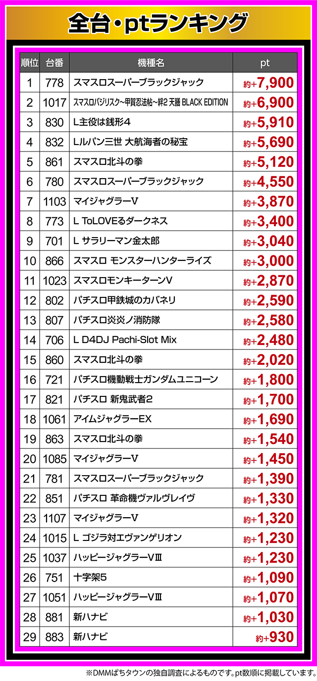 ※なお、本記事中のデータは全てDMMぱちタウンの独自調査によるものです