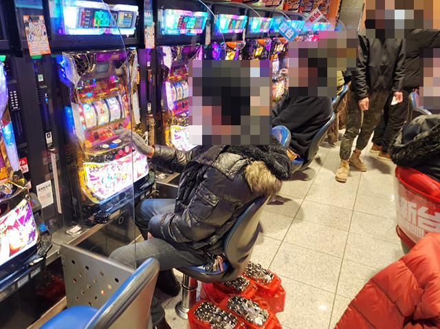 7箱以上の持ち玉を使って遊技をおこなっているプレイヤーを目撃。
