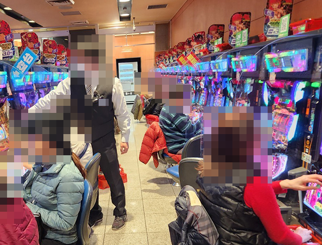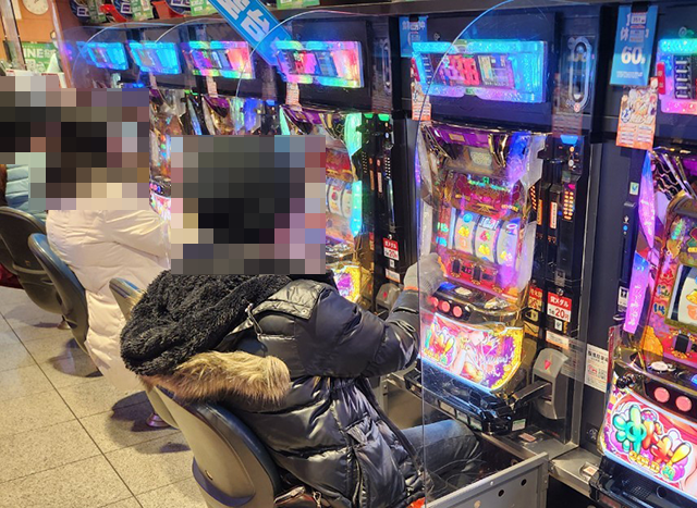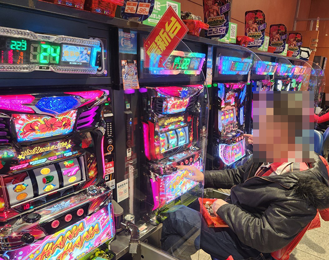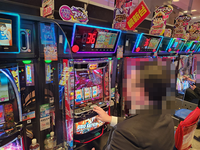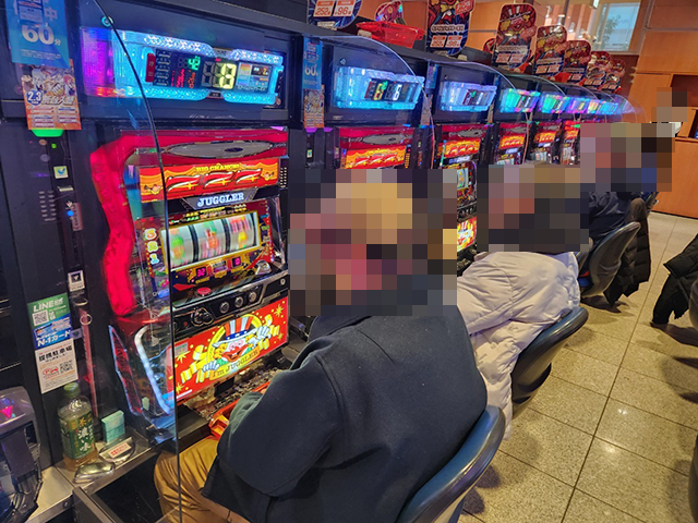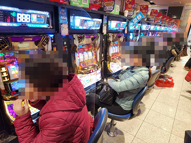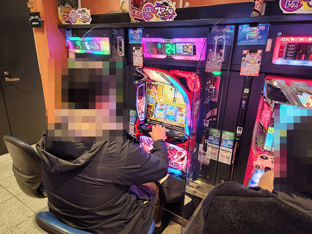 パチスロコーナーをみてみると、究極的に楽しんでいるようなプレイヤーの姿があった。