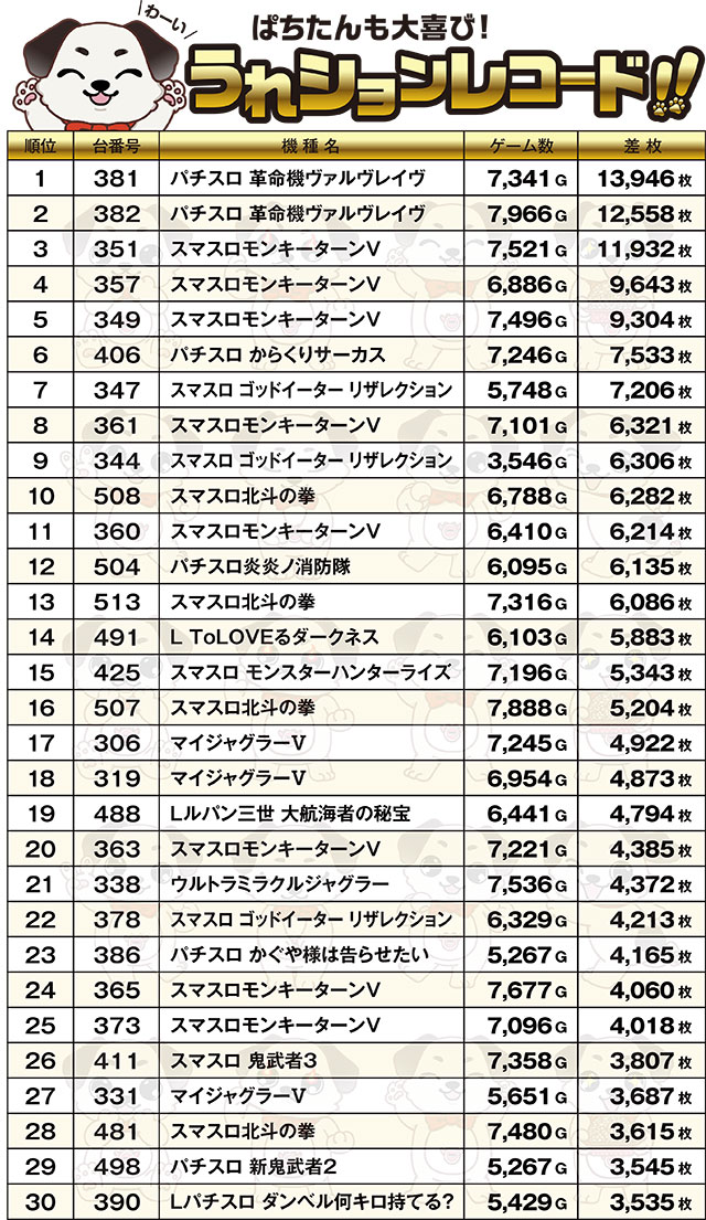 パチスロコーナーの記録に驚いたわん!
