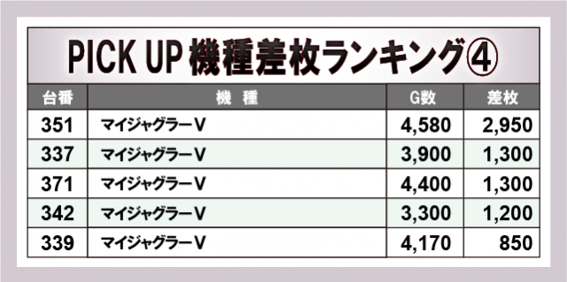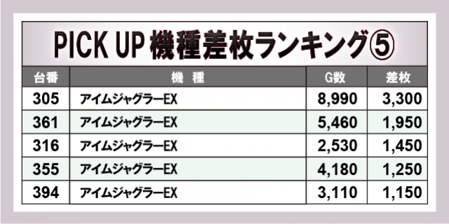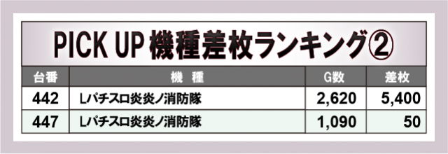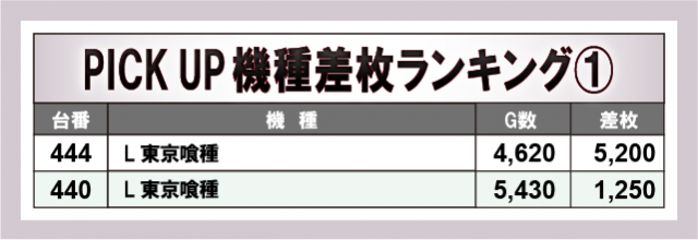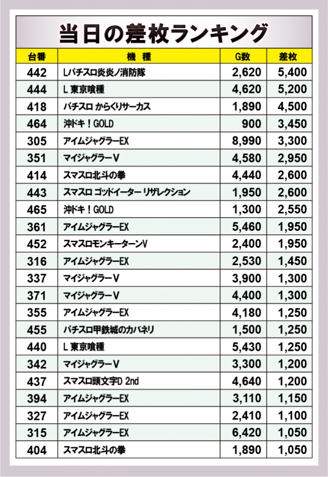 上述でも触れた『Lパチスロ炎炎ノ消防隊』『L 東京喰種』は全台プラスを記録。さらに『マイジャグラーⅤ』『アイムジャグラーEX』でもコンスタントな大当りで1,000枚OVERが多数発生し、遊技するファンの期待は自然と高まっていたことだろう。