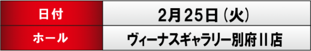 2月25日、『ヴィーナスギャラリー別府II』にて「キングフッキー君 独占取材」が実施された。二日連続実施ということで、朝から駆けつけた多くのファンは今回も盛り上がる事に期待を抱いていた様子が印象に残る。同店はこのプレッシャーに対しどのような形で応えたのだろうか。さっそく以下から、詳細データとともに店内の様子をお伝えしていこう!
