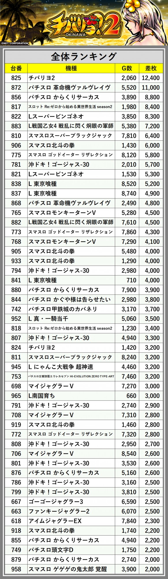 厳選された取材対象機種をはじめ、その他スロット全体から好記録が飛び出した!プレイヤーが楽しんだ1日を下記データにて振り返ってみて欲しい。