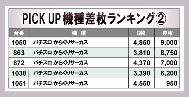 まとまった出玉を獲得し、且つしっかりと打ち込まれている台が複数確認できた『マイジャグラーⅤ』は、今回最も大きな盛り上がりを見せていた機種と言える。その他では、『パチスロ からくりサーカス』を筆頭にSANKYO機種が多く活躍していたのが印象的だ。当日は、ノーマル機・AT機のどちらからでもチャンスがあったことが窺える!