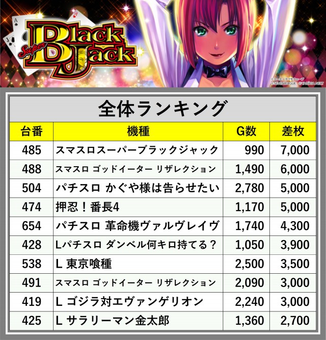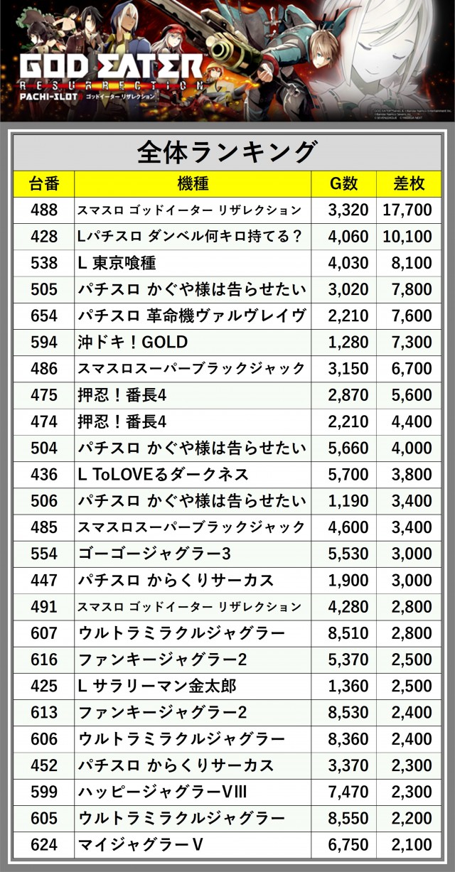 ※差枚数順に掲載しています