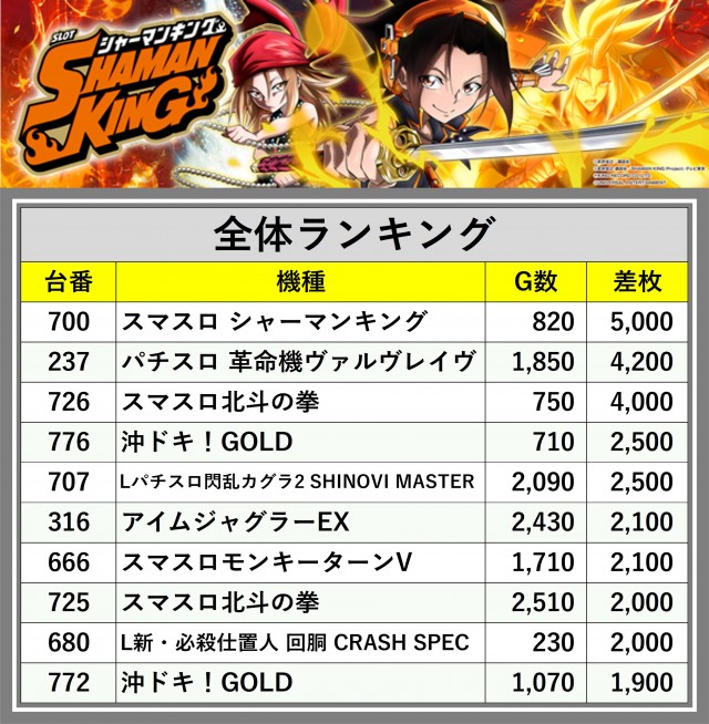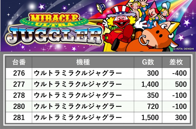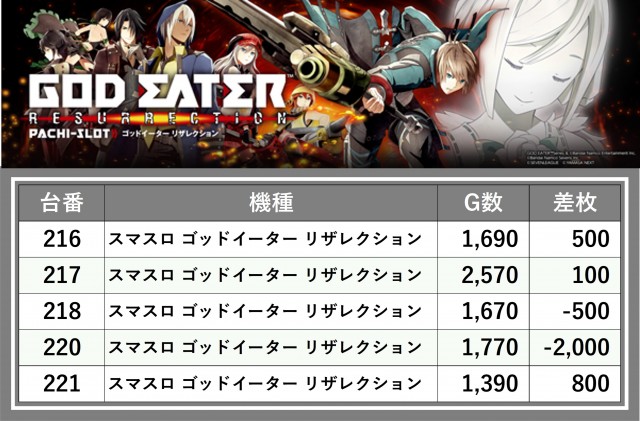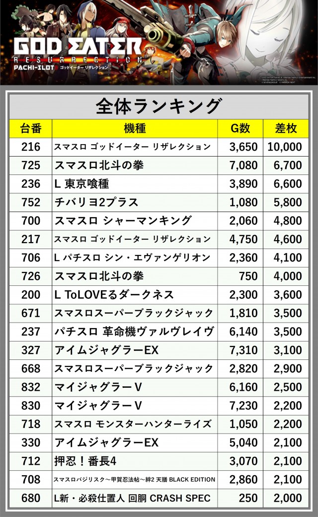 厳選された取材対象機種をはじめ、その他スロット全体から好記録が飛び出した!プレイヤーが楽しんだ1日を下記データにて振り返ってみて欲しい。