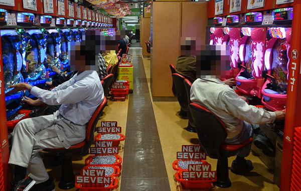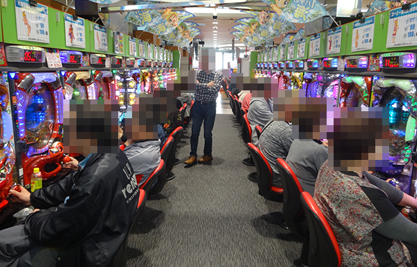 貸し玉料金を問わずに、明るい雰囲気が広がっていた「夢広場ニューセブン六丁の目」。プレイヤーの輝くような笑顔がホールの魅力をあらわしているようであった。
