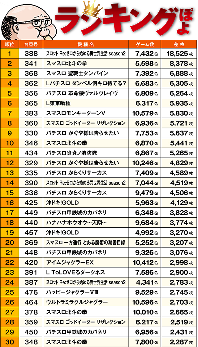 トータル差枚ランキング…ぽよ!