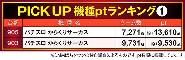 「パチスロ からくりサーカス」の905番台が約+13,610pt!