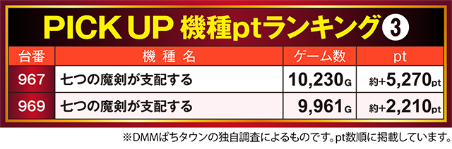 「七つの魔剣が支配する」では、967番台が約+5,270pt、969番台も約+2,210ptとなっていました~♪