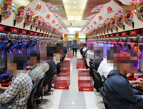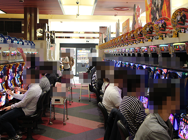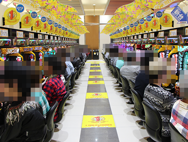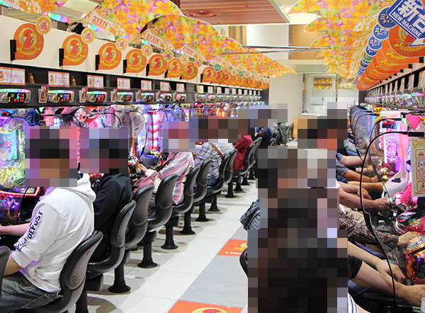 14時ごろの4円パチンコでは、多くの機種がほぼ満席といった状況。