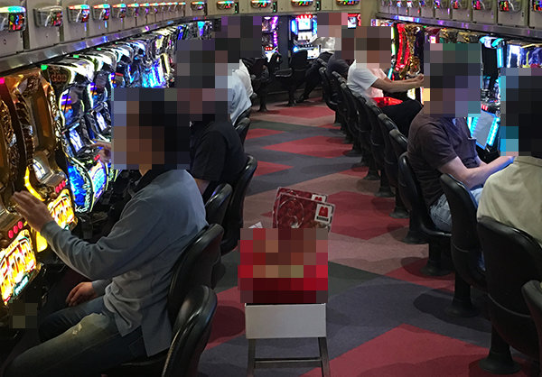 15時ごろの4円パチンコでは、ほぼ満席となっている機種が多数。