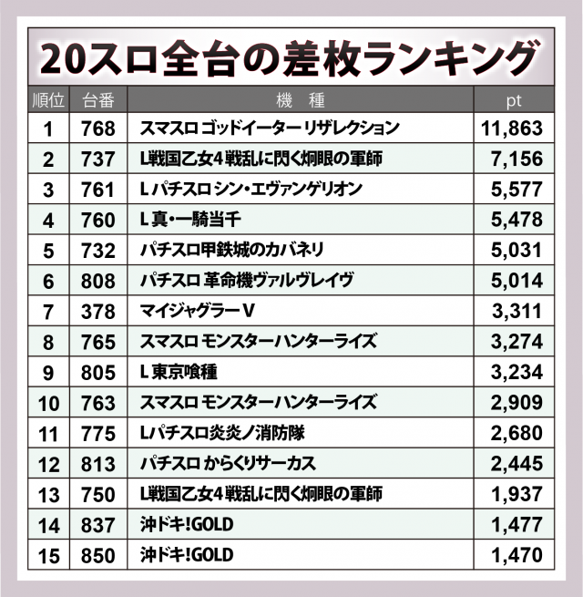 ※差枚数順に掲載しています。