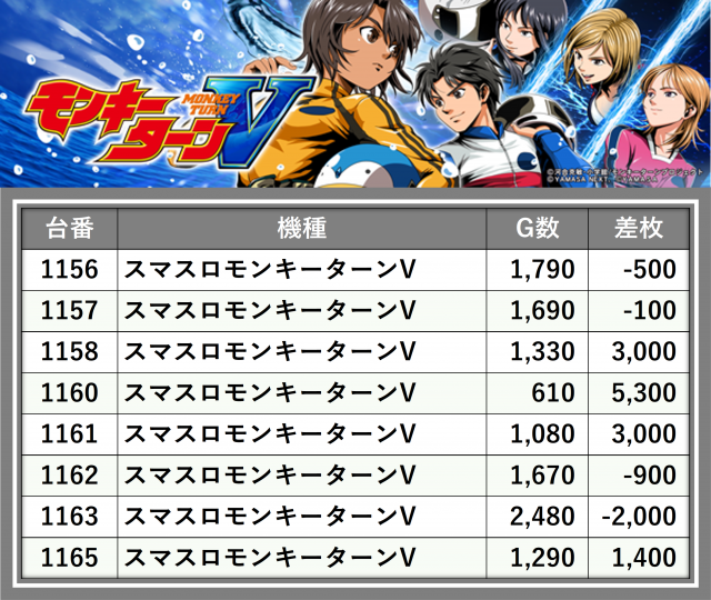 ※台番順に掲載しています