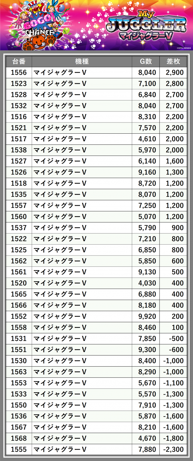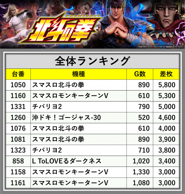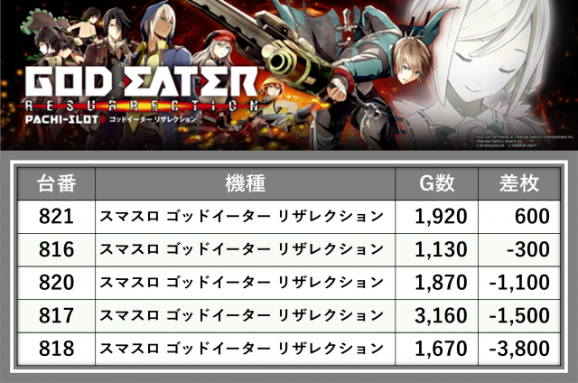 厳選された取材対象機種をはじめ、その他スロット全体から好記録が飛び出した!プレイヤーが楽しんだ1日を下記データにて振り返ってみて欲しい。