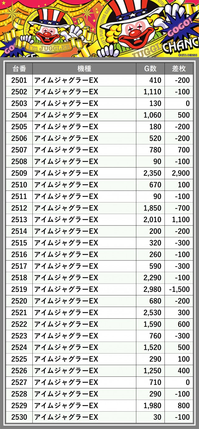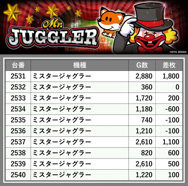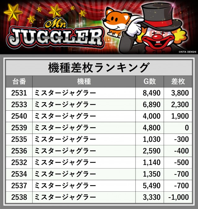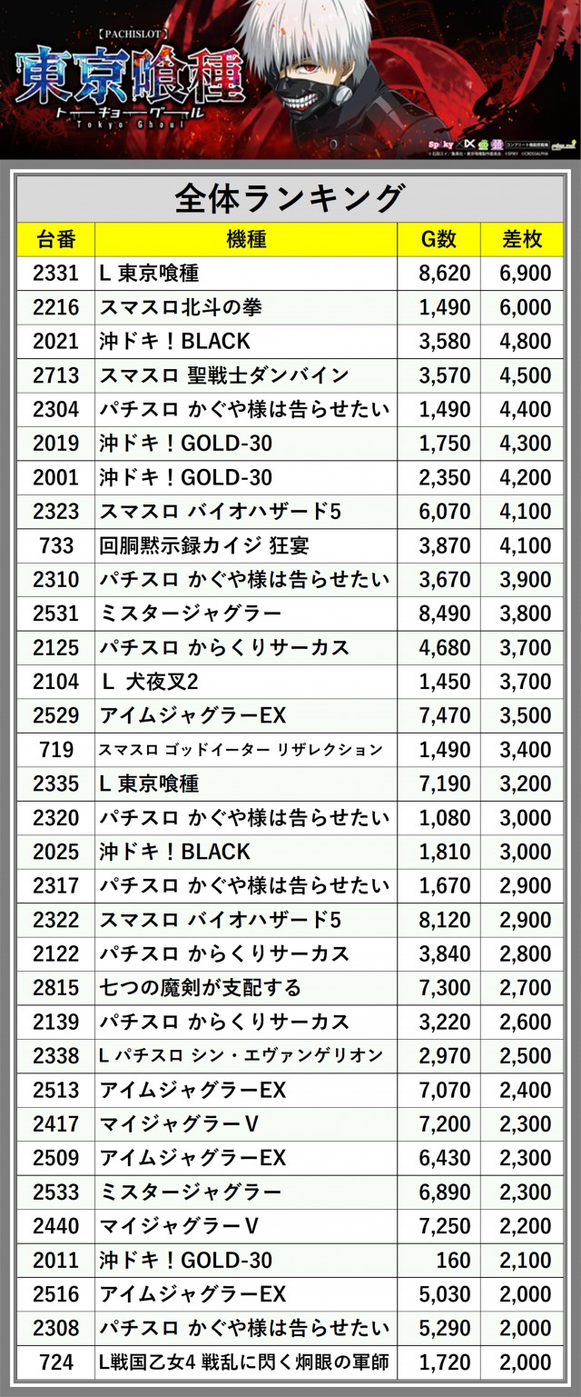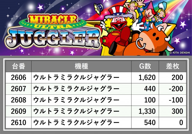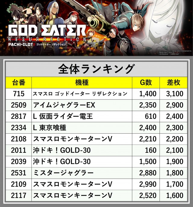 厳選された取材対象機種をはじめ、その他スロット全体から好記録が飛び出した!プレイヤーが楽しんだ1日を下記データにて振り返ってみて欲しい。