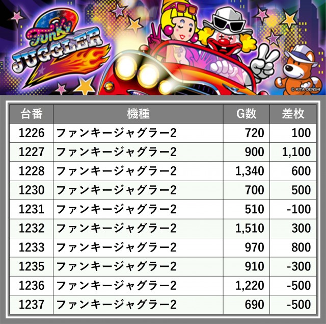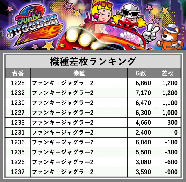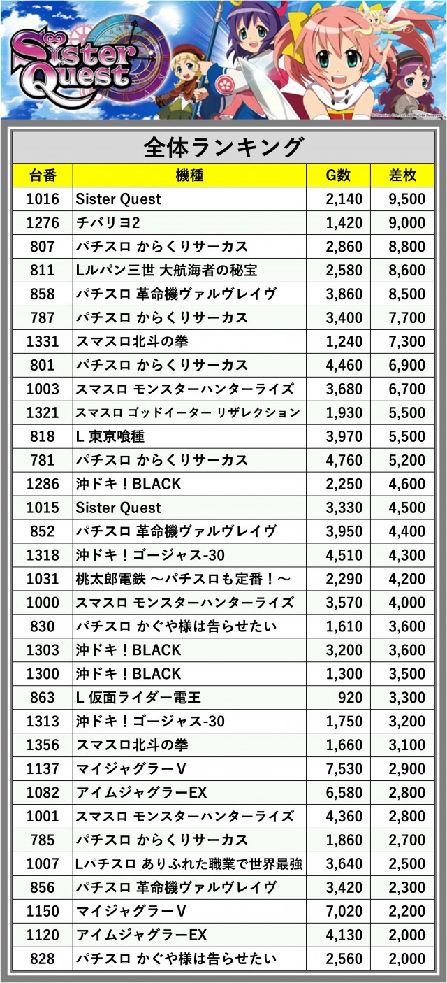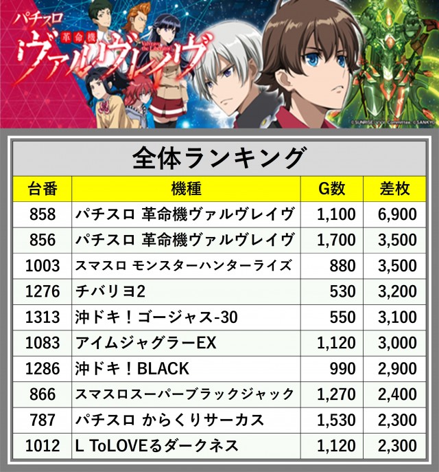 厳選された取材対象機種をはじめ、その他スロット全体から好記録が飛び出した!プレイヤーが楽しんだ1日を下記データにて振り返ってみて欲しい。