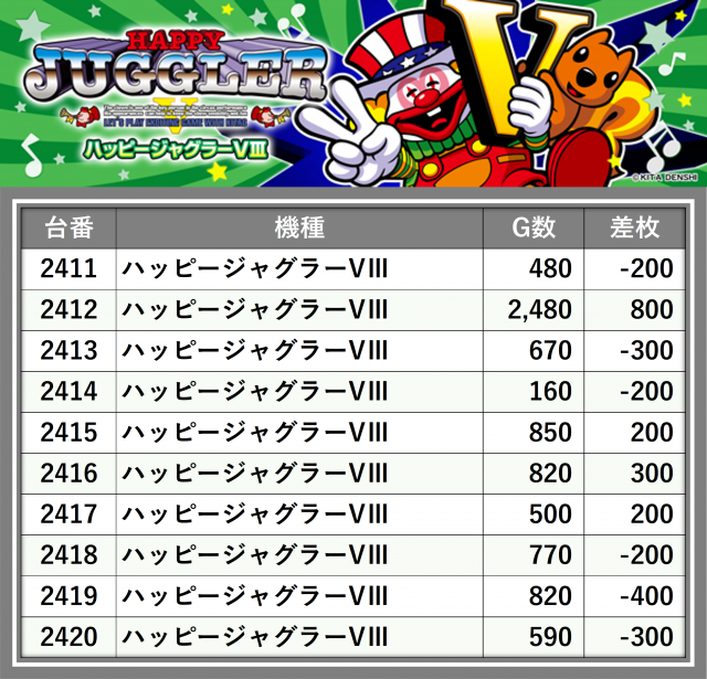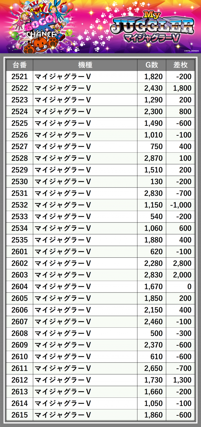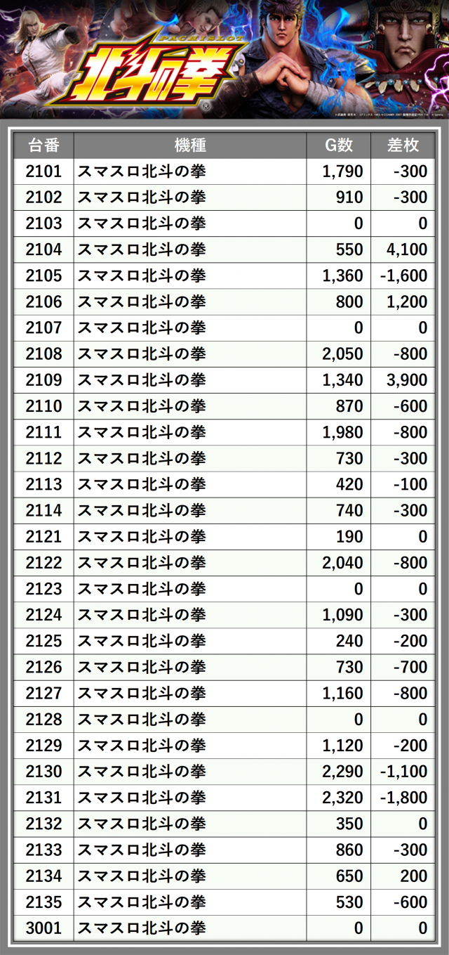 ※台番順に掲載しています