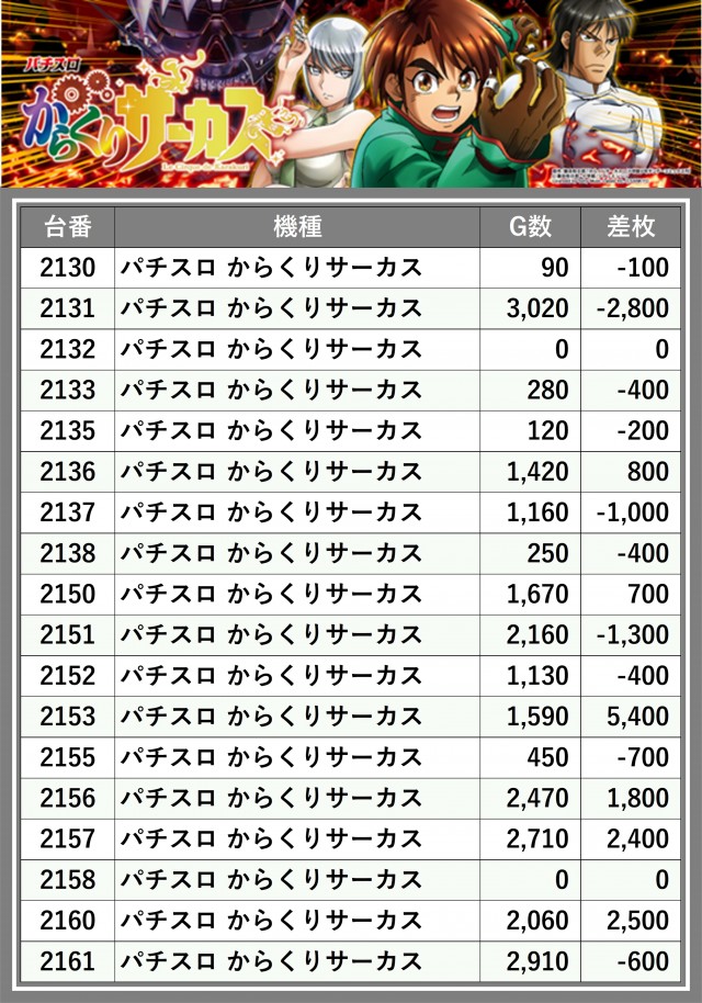 ※台番順に掲載しています