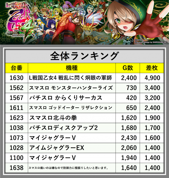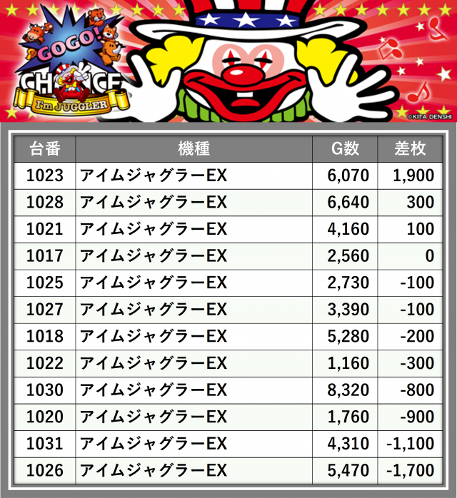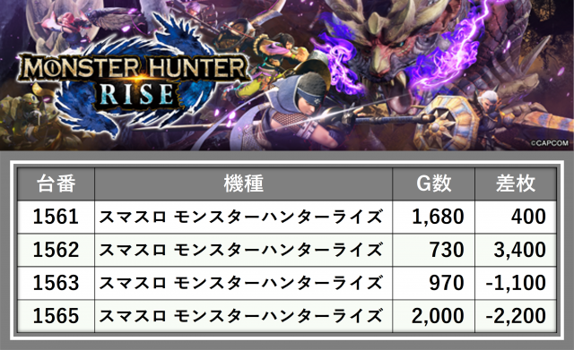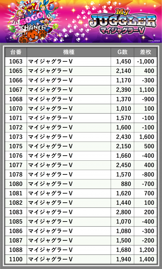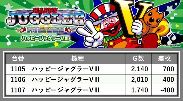 厳選された取材対象機種をはじめ、その他スロット全体から好記録が飛び出した!プレイヤーが楽しんだ1日を下記データにて振り返ってみて欲しい。
