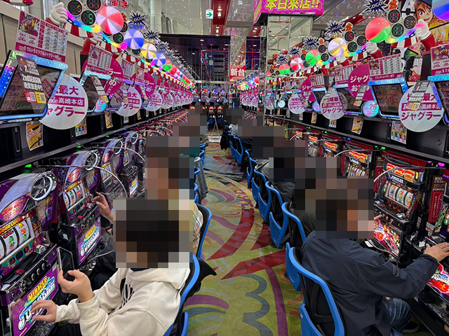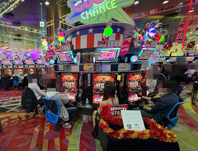 ひかるちゃんが座った「マイジャグラーⅤ」をはじめ、スマスロや沖スロなど、いろいろな機種が人気を集めていました。