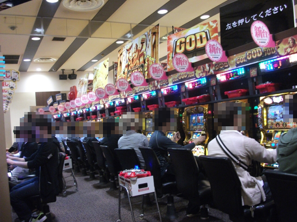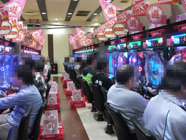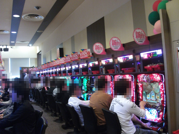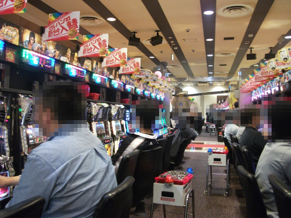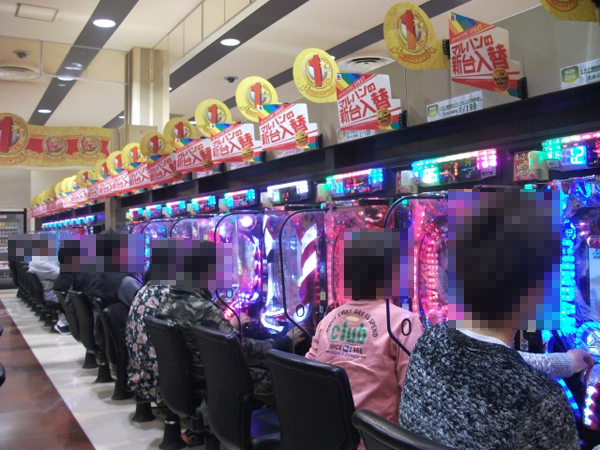 どのシマをみても空き台は少なく、各プレイヤーがお気に入りの機種をじっくりと楽しんでいるようだった。