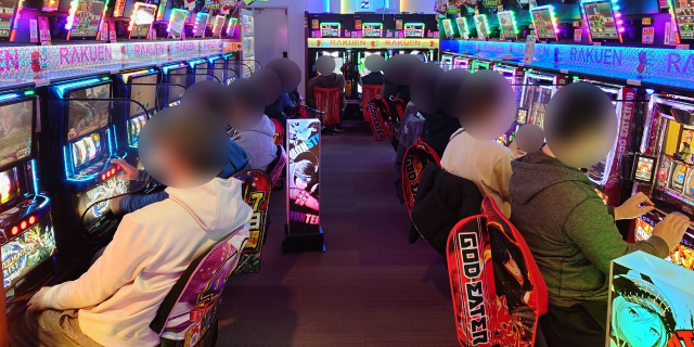 今回の全店共通PICK UP機種は『スマスロ ゴッドイーター リザレクション』。全店舗の総台数37台中21台がプラス差枚で実戦を終え、平均差枚は+2,700pt超という見事な結果を残しているだけに、各店舗のシマ内には常にファンの笑顔が溢れ返っていた。