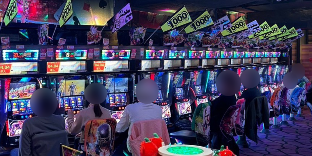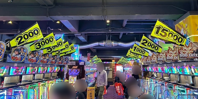 この日、朝から200人以上のプレイヤーが集まった「楽園沼津店」。店内状況をチェックすると、『L ToLOVEるダークネス』で万枚目前の+9,000pt超、『沖ドキ!GOLD-30』で+8,000pt超など、PICK UP機種以外からもハイスコアが続出している。