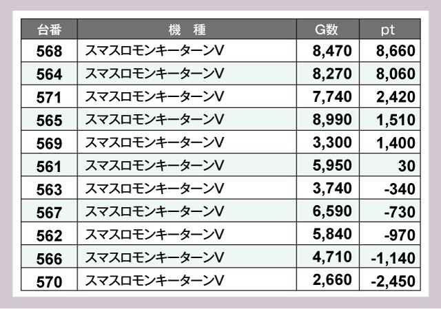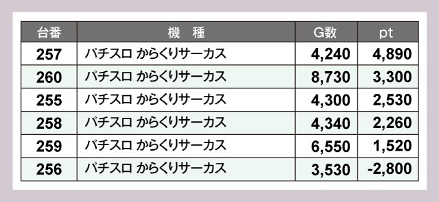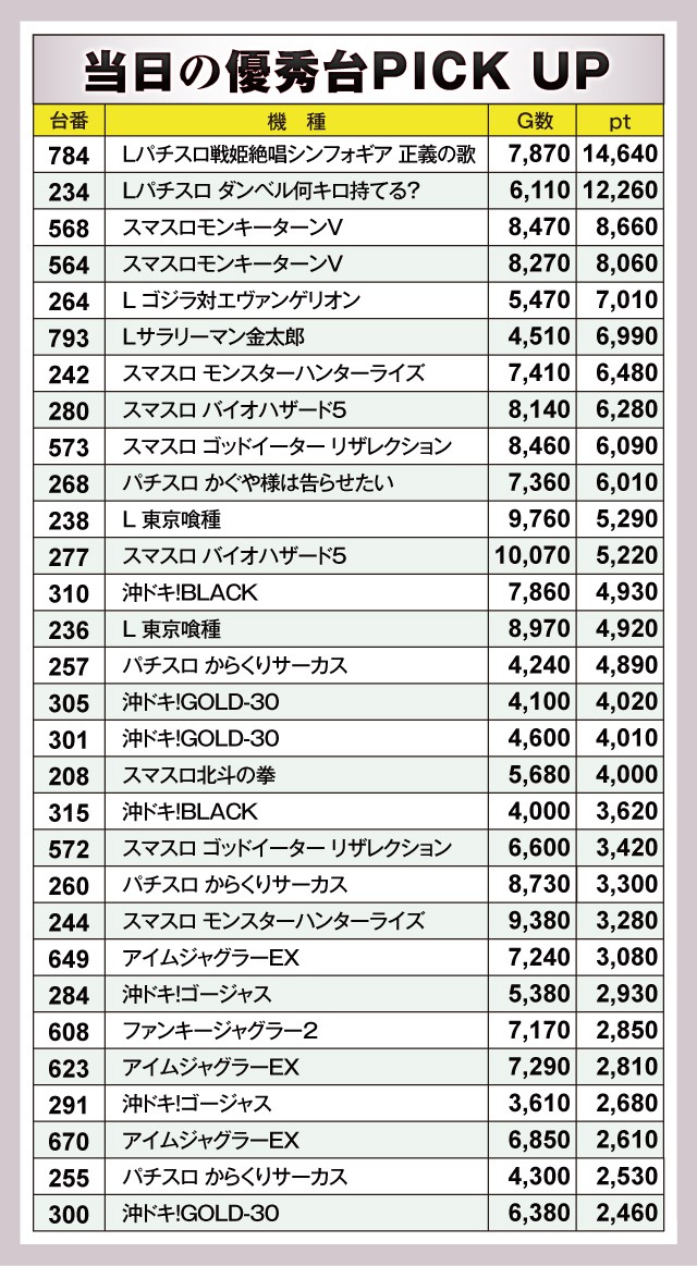 ※差枚pt順に掲載しています。