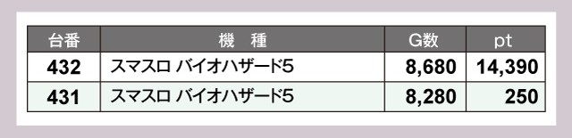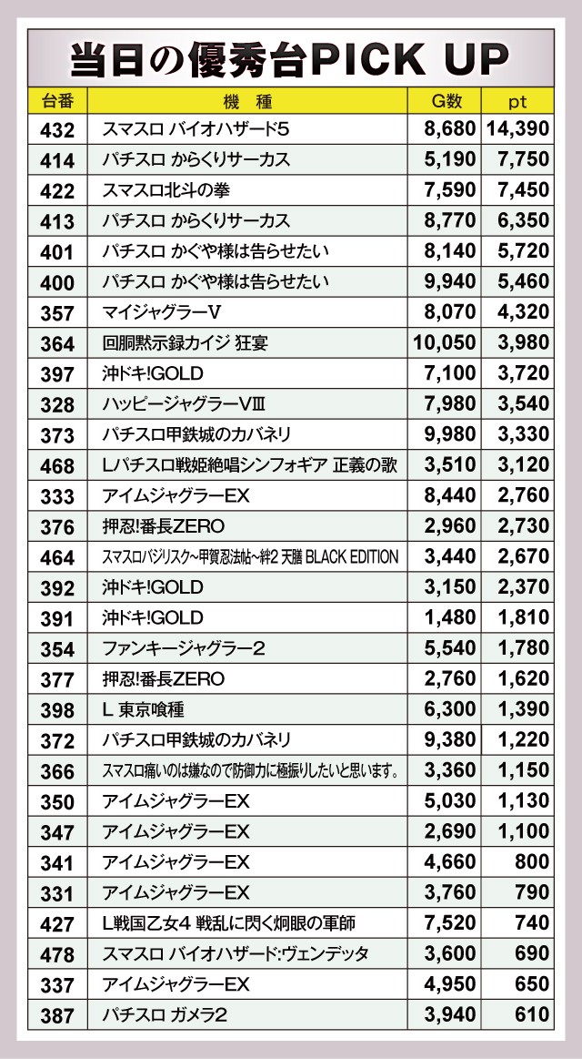 さらに『スマスロ バイオハザード5』は432番台が+14,390ptでランキング1位を獲得した。
