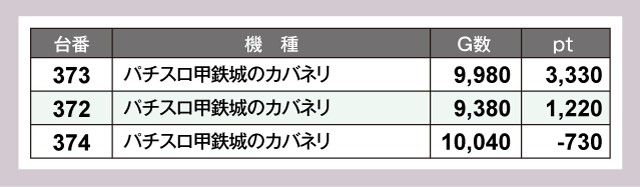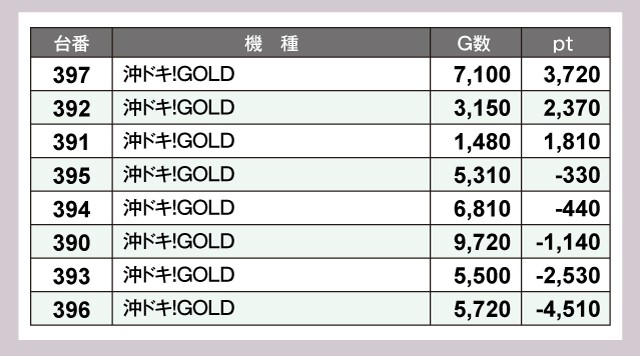 店内を見てみると、432番台『スマスロ バイオハザード5』が+14,000ptオーバーと圧巻のパフォーマンスを披露。ほかにも『パチスロ からくりサーカス』や『スマスロ北斗の拳』で+7,000ptオーバーの好調台が誕生していた。