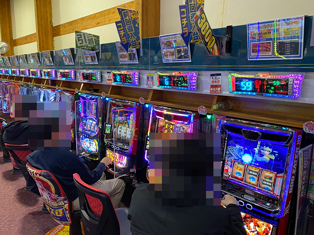 「PA大海物語5ブラックLT99ver.」で大当り回数が40回、「PAスーパー海物語IN地中海2」で大当り回数が57回となっている台を取材時に発見。