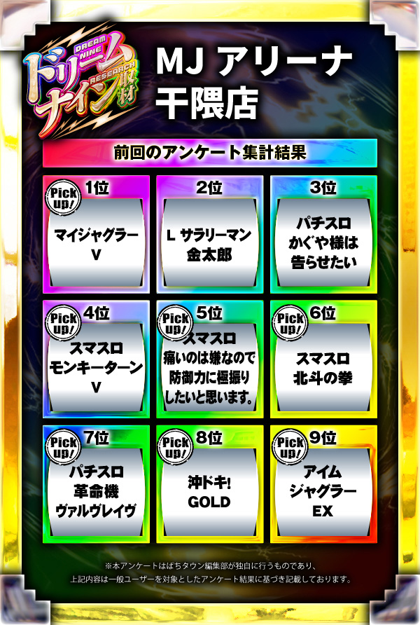 ※差枚数順に掲載しています
