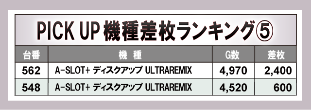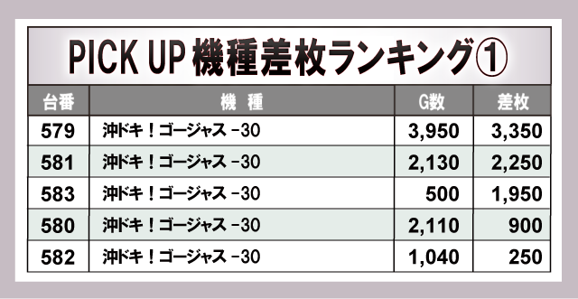 上表の6機種はいずれもプラス差枚数を達成している台が多く、その中でも『沖ドキ!ゴージャス-30』『A-SLOT+ ディスクアップ ULTRAREMIX』は全台プラス差枚数を達成!高い熱量で店内を盛り上げ、ファンを歓喜させた存在だったと言えるだろう。