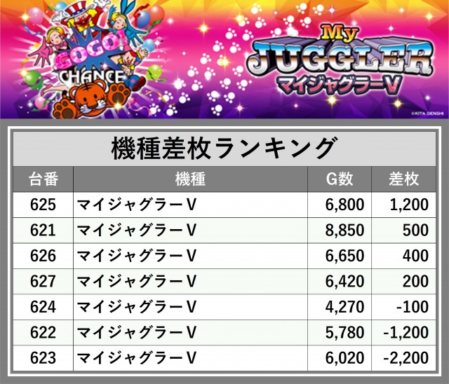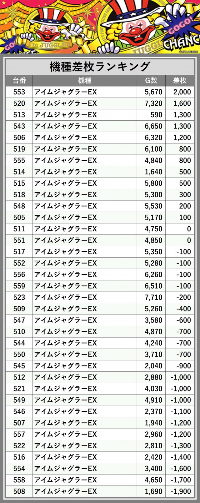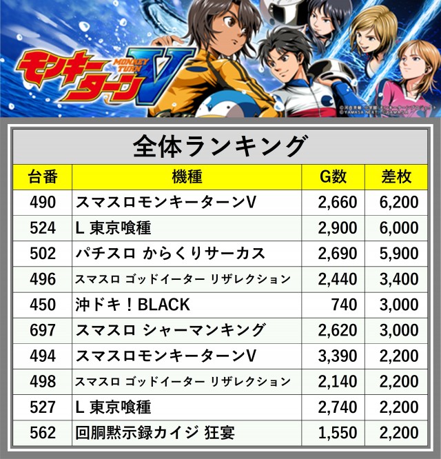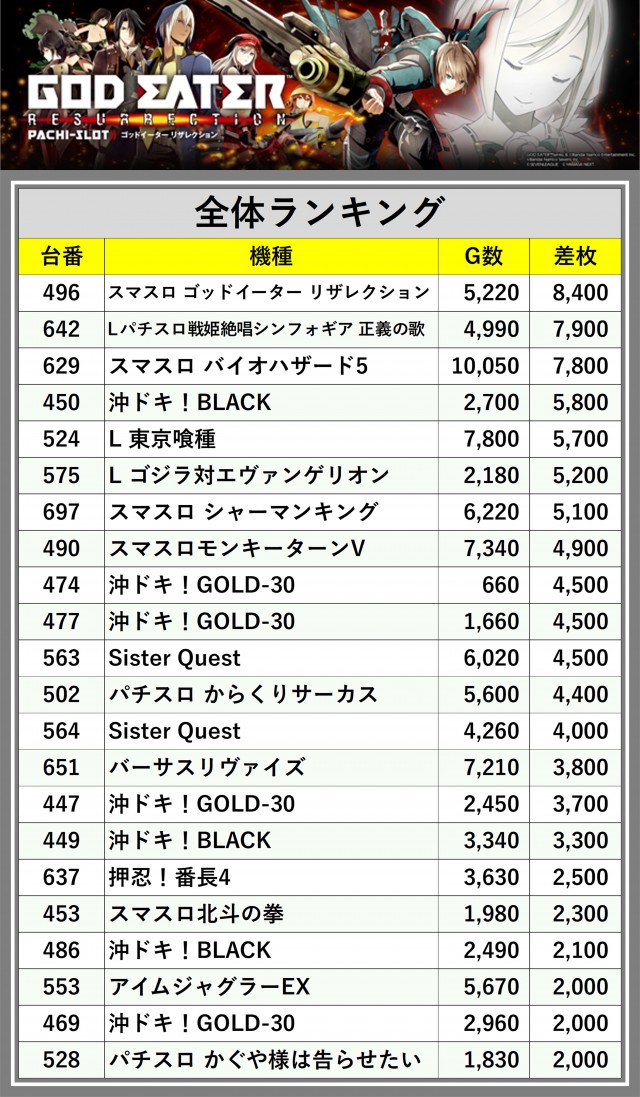 ※差枚数順に掲載しています