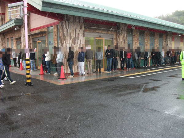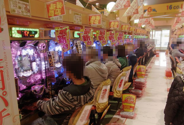 通常であれば9時開店となるのだが、この日は10時開店。パチスロのみ9時30分から入場抽選が行われて50人以上のプレイヤーを集めており、パチンコは並び順で30人ほどであった。