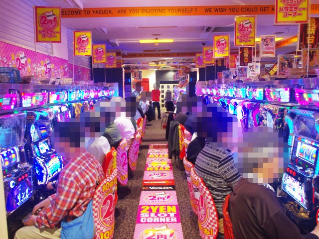 1円パチンコや、2円パチスロなどの低貸し玉コーナーも支持が厚い。空き台はほとんどみあたらない状況となっていた。