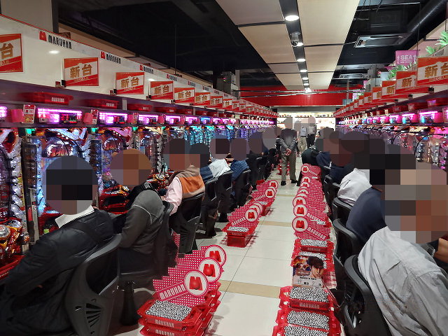 16時ごろの4円パチンコをみると、「ぱちんこCR北斗の拳7 転生」や「CRスーパー海物語IN沖縄4」、「ぱちんこCR真・北斗無双」といった定番機種がほぼ満席に。なかでも、「ぱちんこCR北斗の拳7 転生」のシマでは機種のポテンシャルを十分に発揮したプレイヤーが多くみられ、まさに大盛況といった印象を受けた。