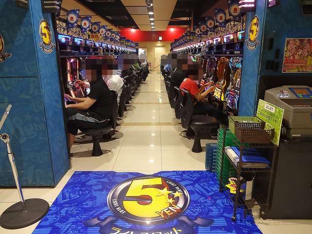 多彩な機種構成も魅力的な5円パチスロも好評。見事なパフォーマンスを披露しているプレイヤーが多く、納得の表情をみせていた。