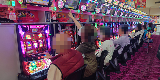 スマスロ・メダル機どちらも活気が感じられた「ABC松本白板店」。次回の「バズ・スロ」も期待大だ!