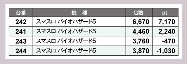 『スマスロ バイオハザード5』は242番台+7,170pt、241番台+2,240ptと絶好調だった。