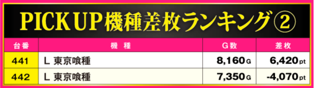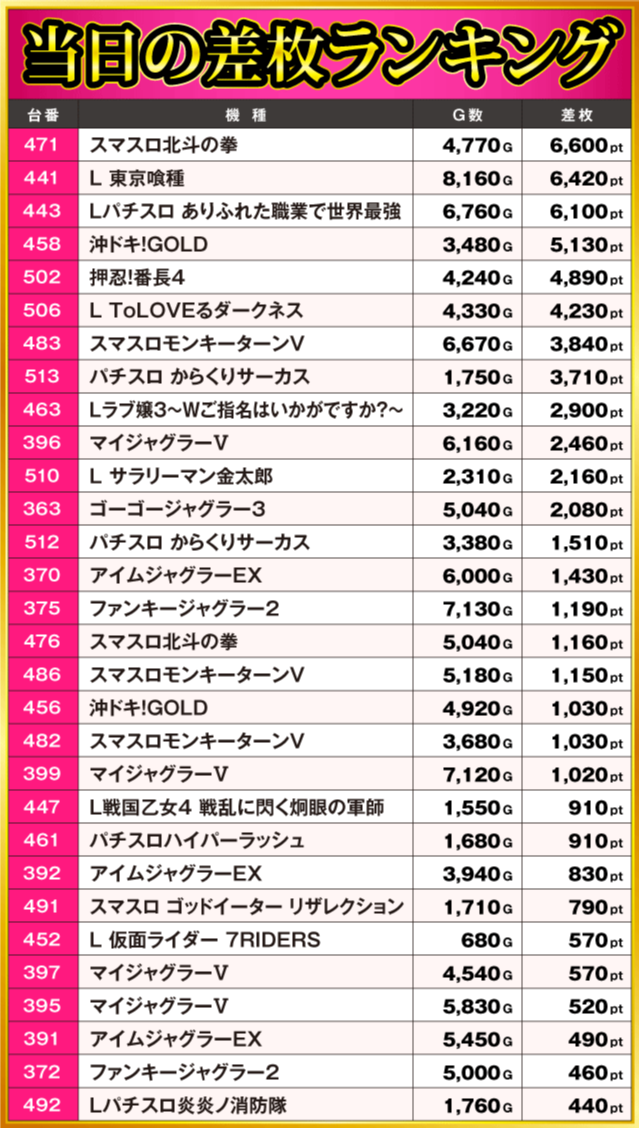 当日の差枚ランキング