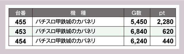 『パチスロ甲鉄城のカバネリ』は設置3台がすべてプラスptとなり、安定した人気と性能を証明した。