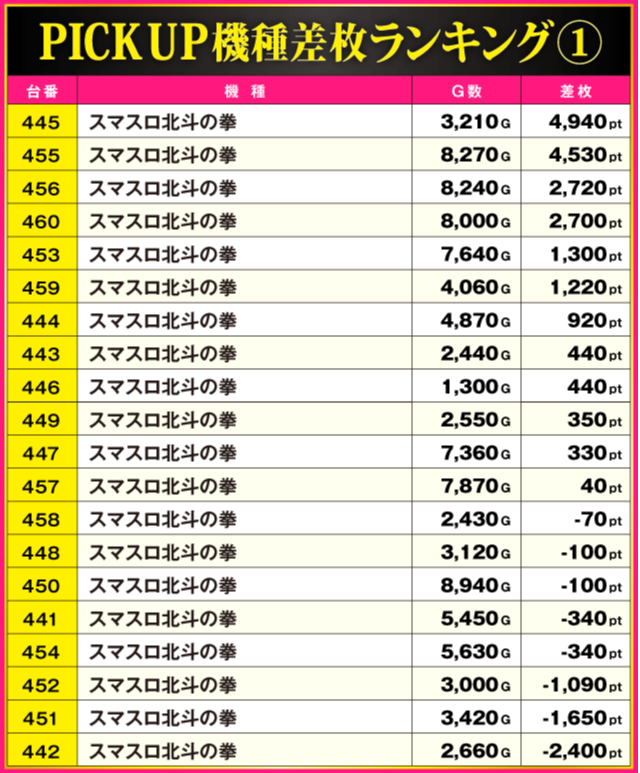 ※差枚pt順に掲載しています。