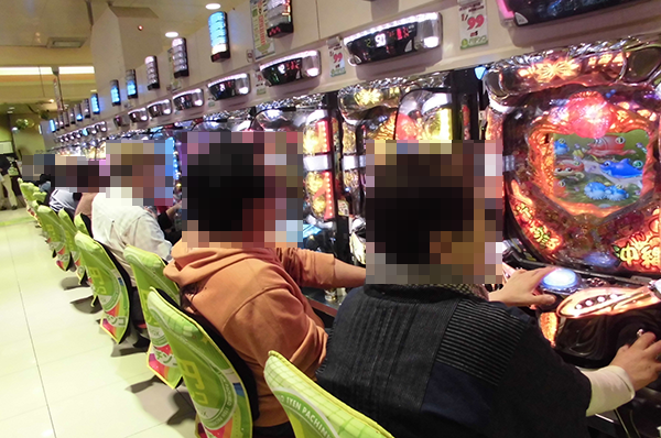 海物語シリーズと遊パチを中心に、さまざまな機種で笑顔のプレイヤーを確認した。