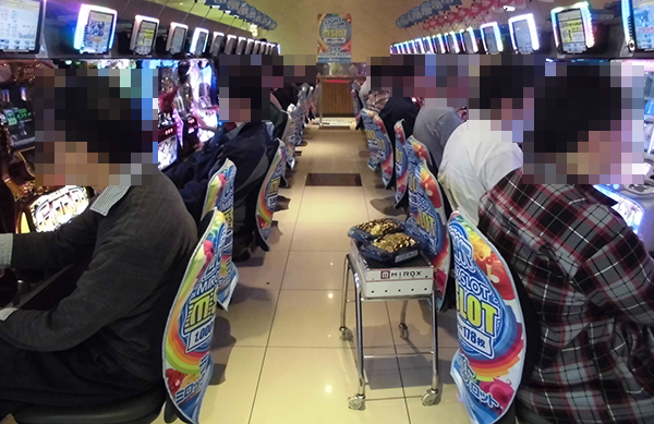 1000円/178枚パチスロの支持も厚く、空き台はほとんど見当たらない。